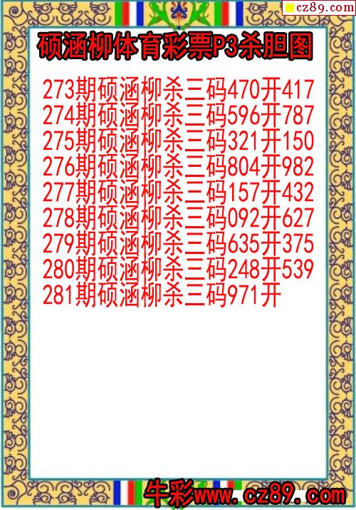 2025年328期牛彩网体彩P3画迷图谜汇总分享