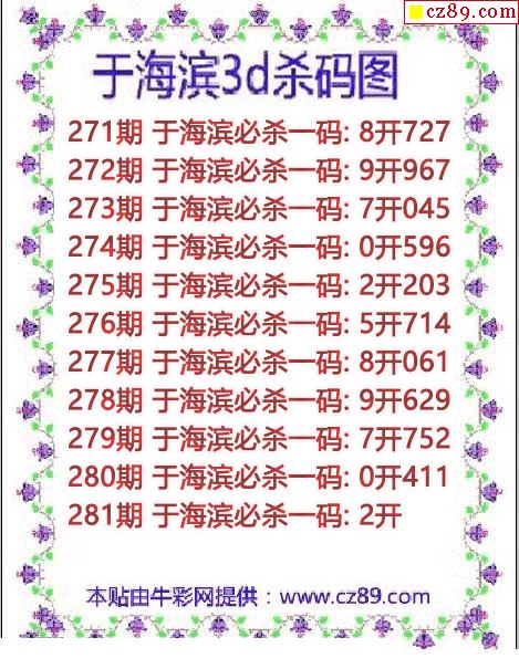 牛彩版3D预测彩报图25年325期打印版