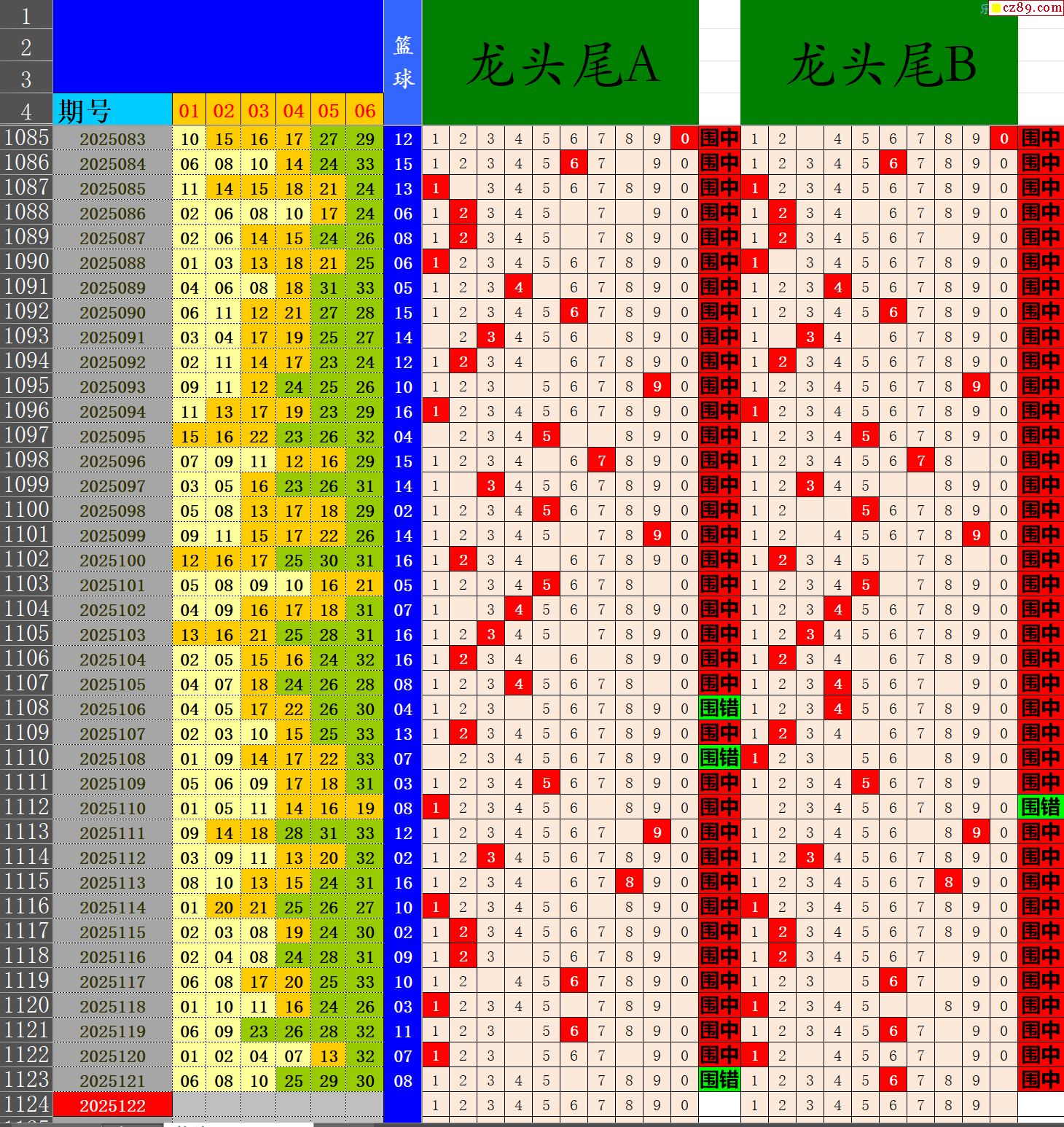 25年122期秋雨龙头凤尾走势图表