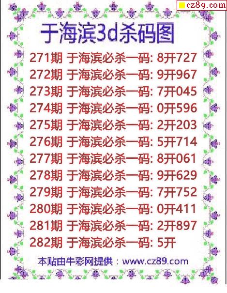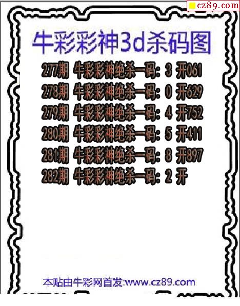 牛彩版3D预测彩报图25年340期打印版