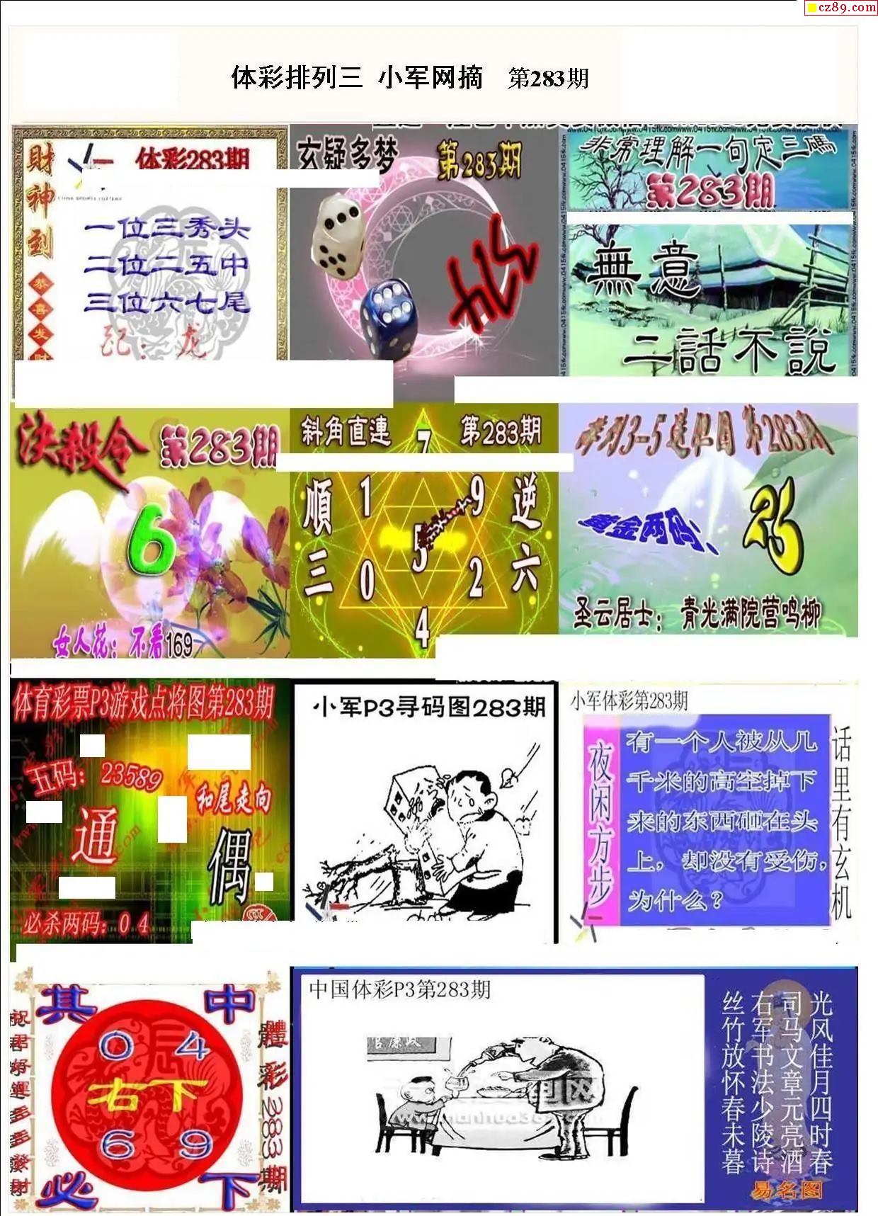 2025年283期牛彩网体彩P3画迷图谜汇总分享
