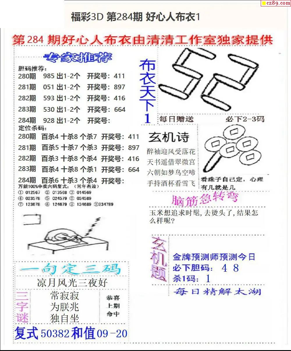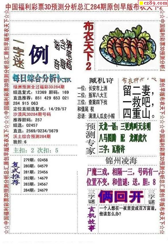 25福彩3d326期真版荆楚玄机彩报