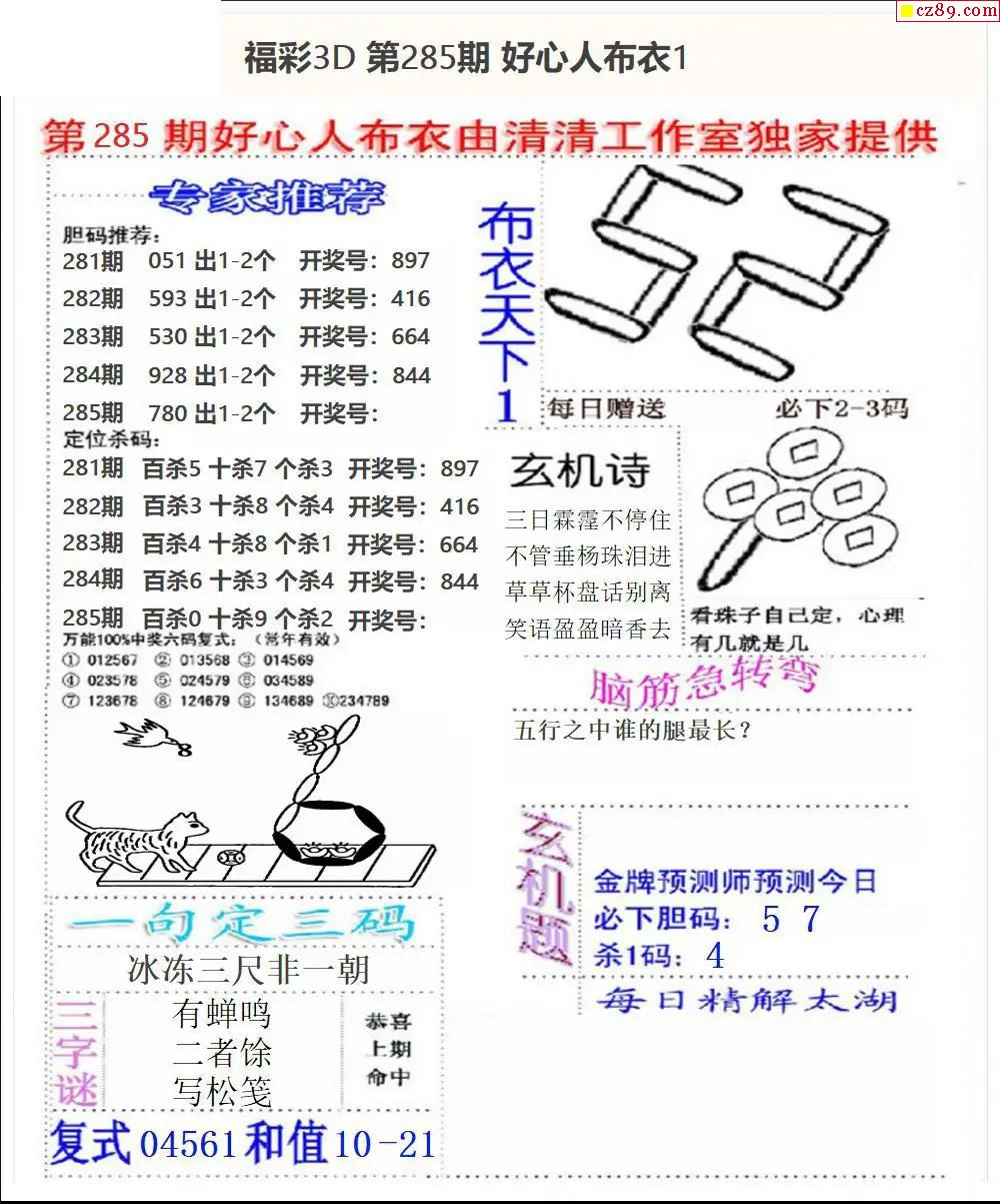 福彩3D2026020期牛彩图谜预测汇总