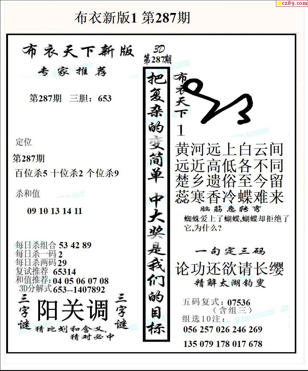 早版布衣2025329期3d图谜