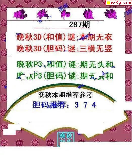 晚秋和值谜2025329期3d图谜