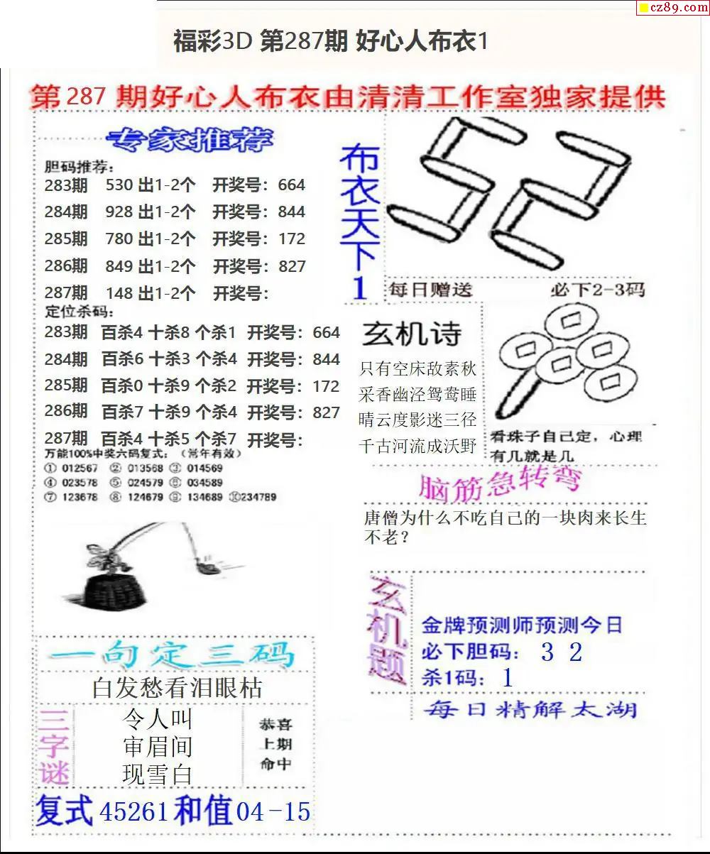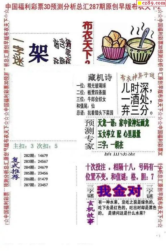 2025287期3d图谜汇总(五)