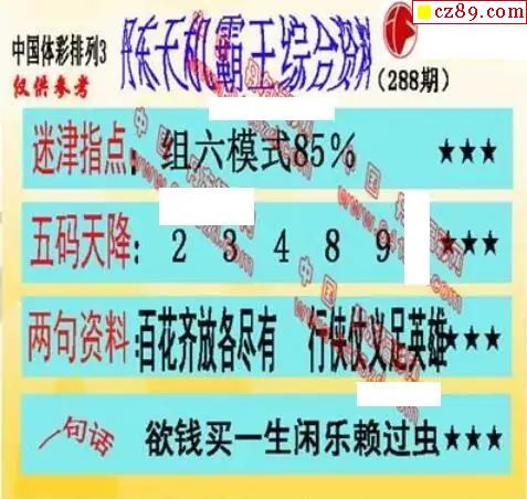 2025年288期牛彩网体彩P3画迷图谜汇总分享