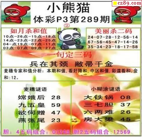 小熊猫2025328期体彩P3图谜