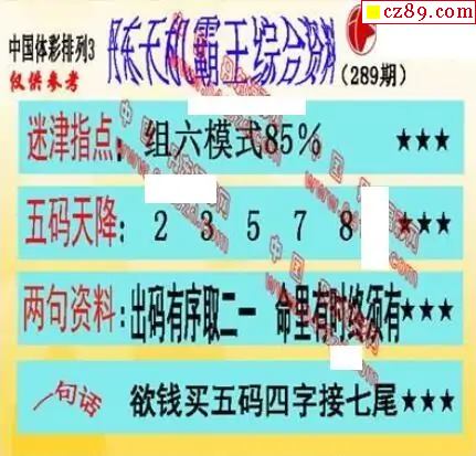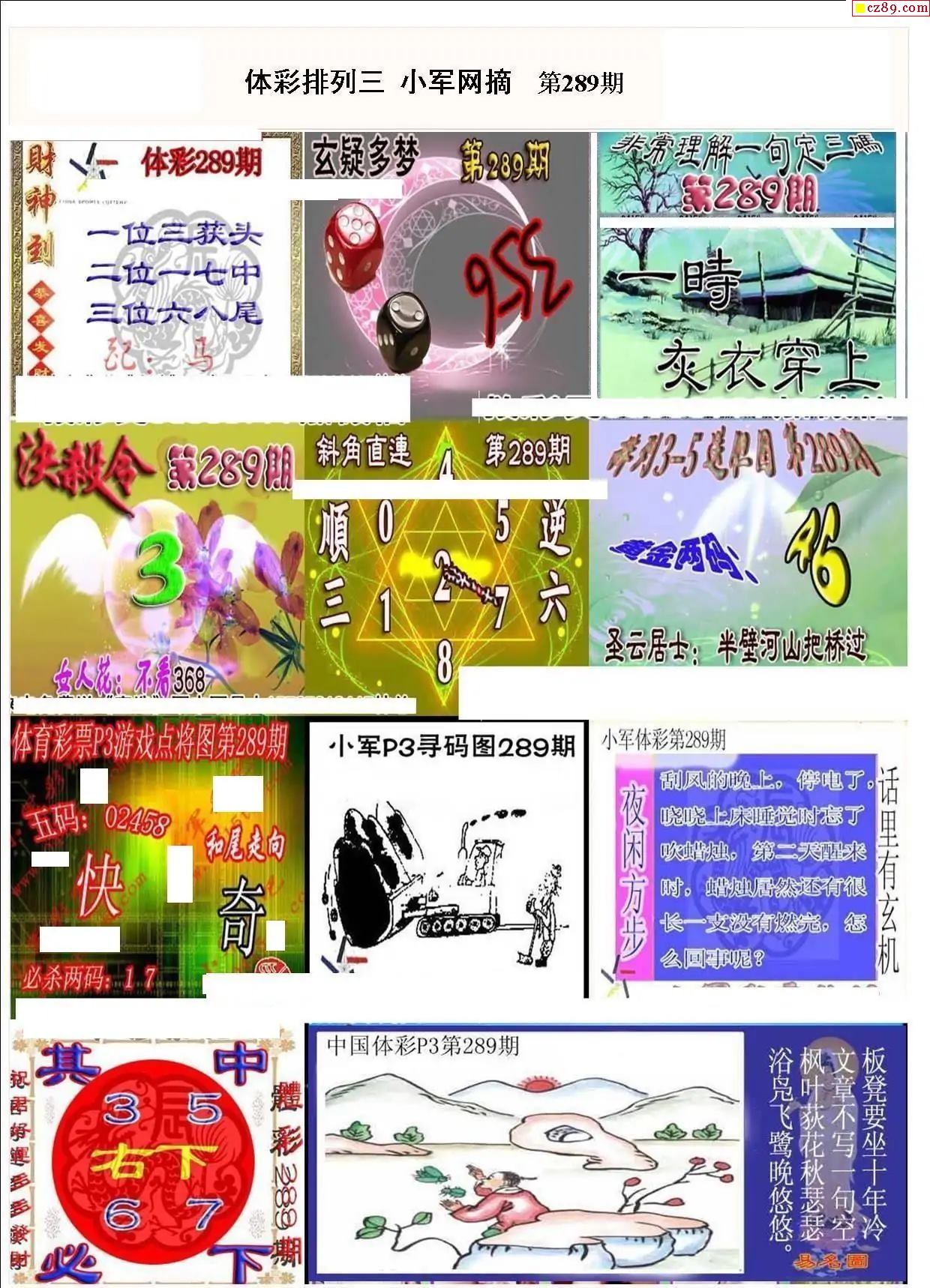 2025年289期牛彩网体彩P3画迷图谜汇总分享