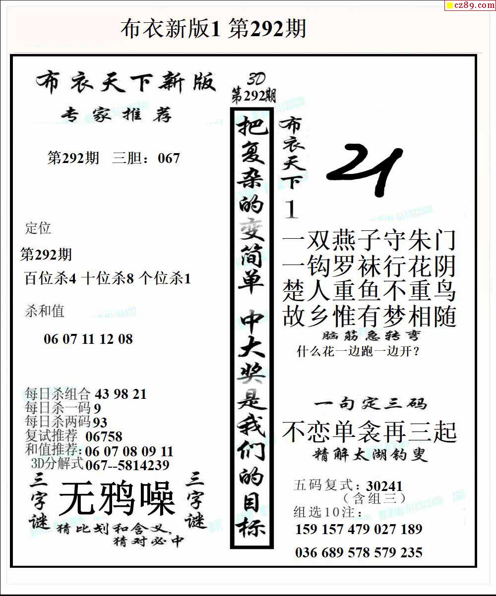 2025292期3d字谜图谜总汇
