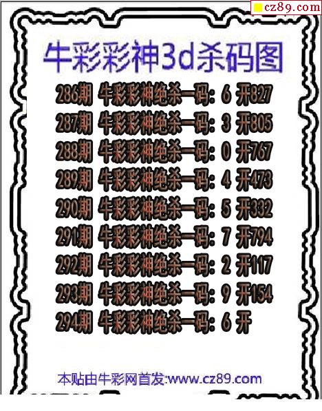 牛彩版3D预测彩报图25年327期打印版