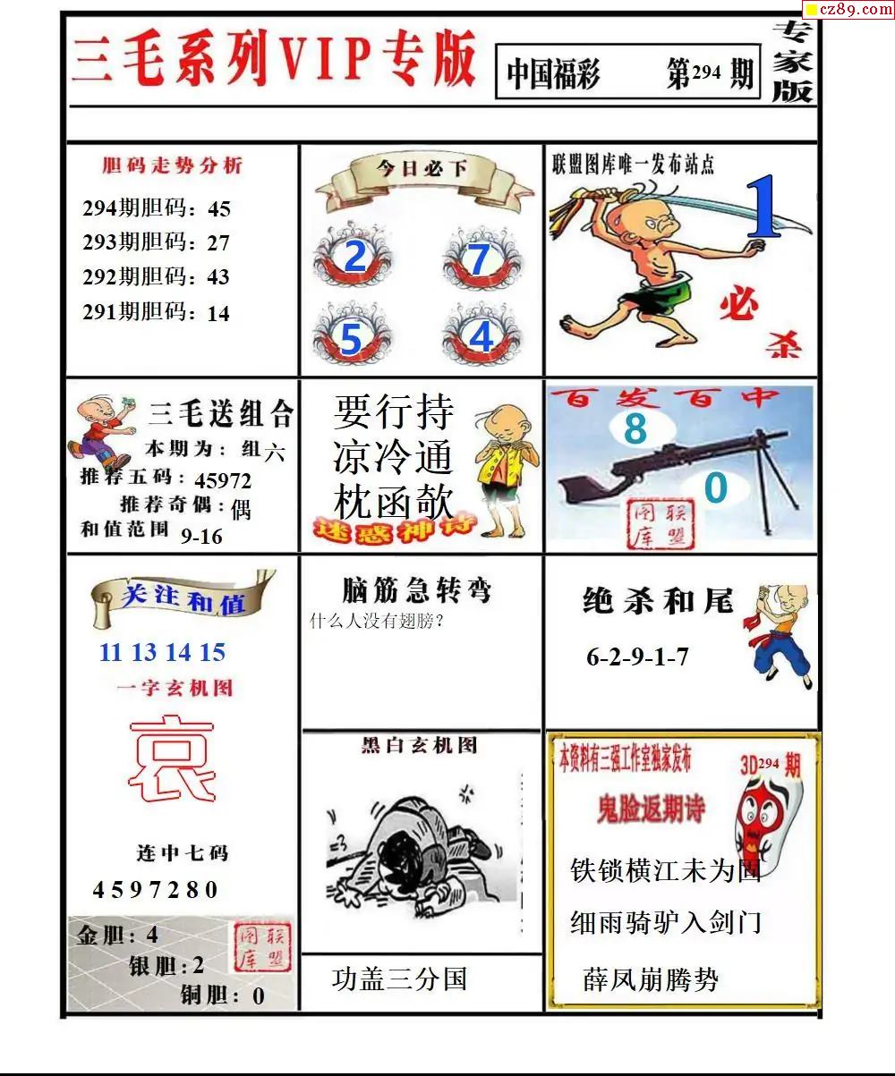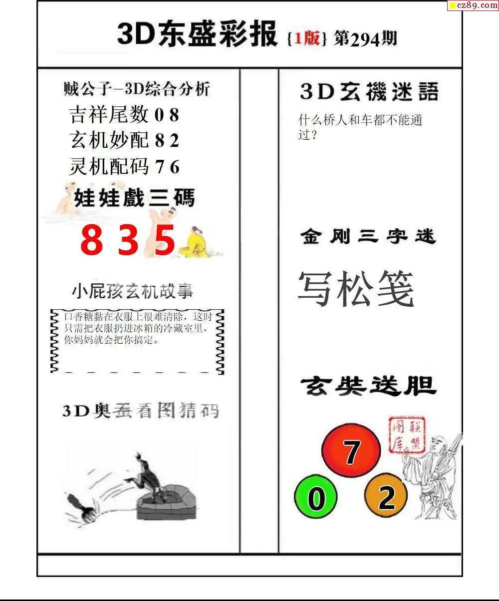 福彩3D2025294期东盛彩报+精品三毛会员版