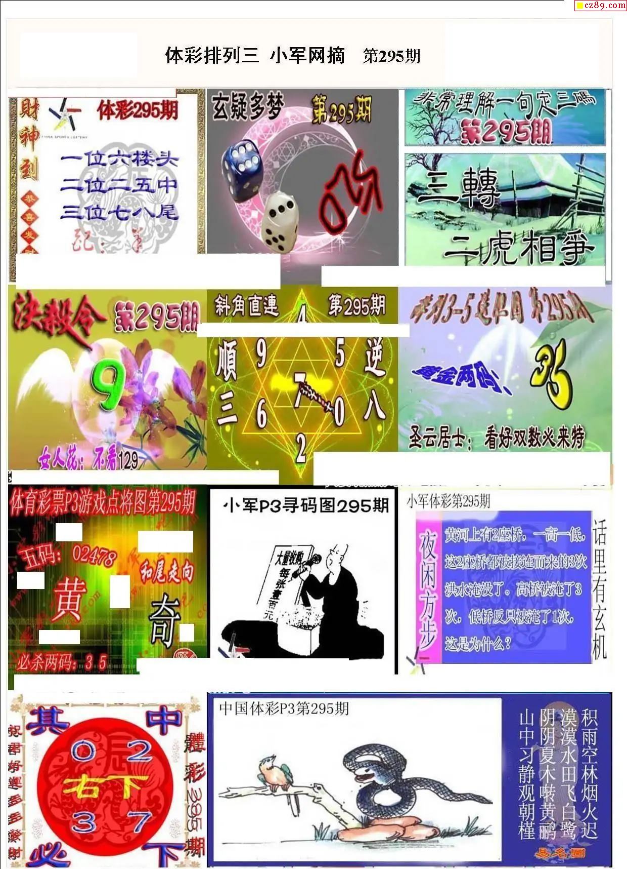 2025年295期牛彩网体彩P3画迷图谜汇总分享