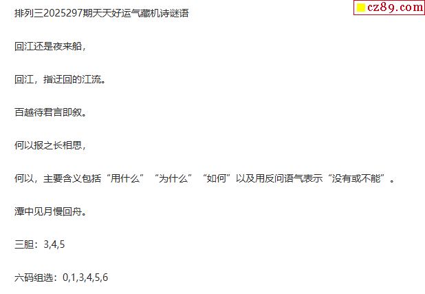 25年297期 天天好运气藏机诗谜