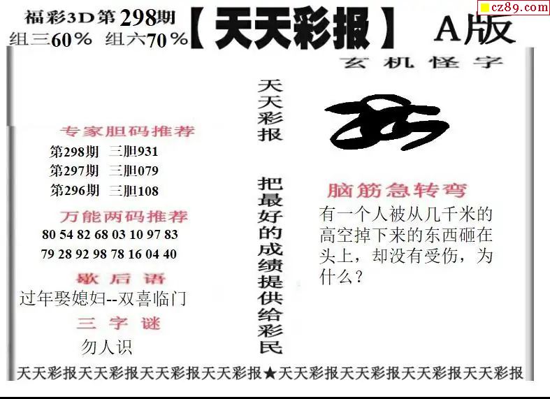 牛彩版3D字谜彩报图25年327期打印版