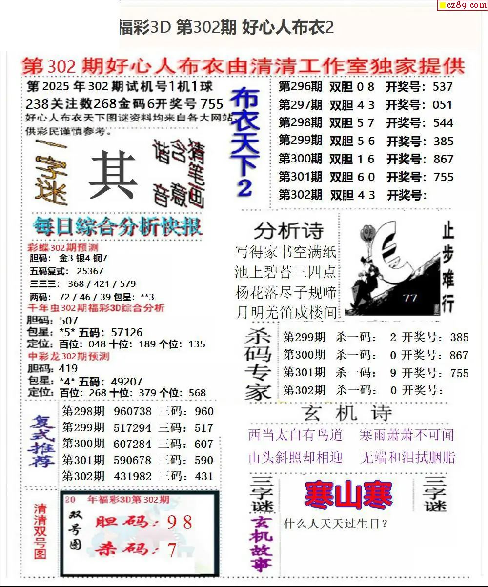 福彩3D2026091期 红尘入世锦鲤吐胆图