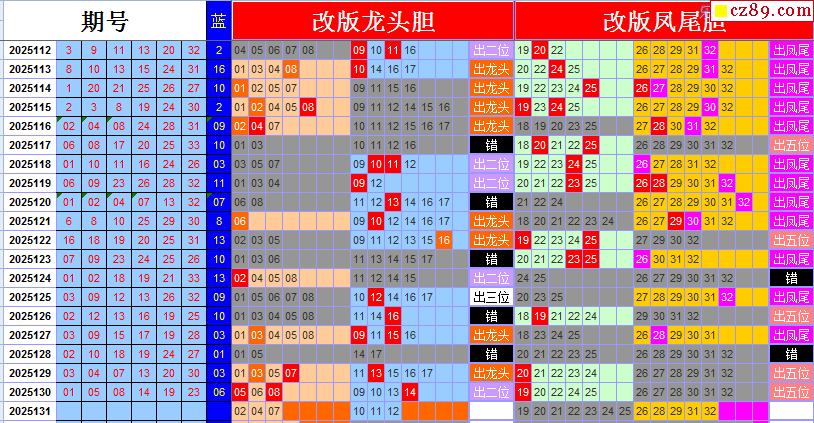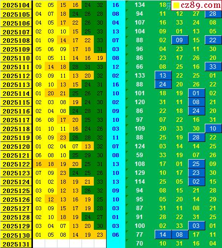 25年131期飞向阳光福彩双色球预测图表汇总