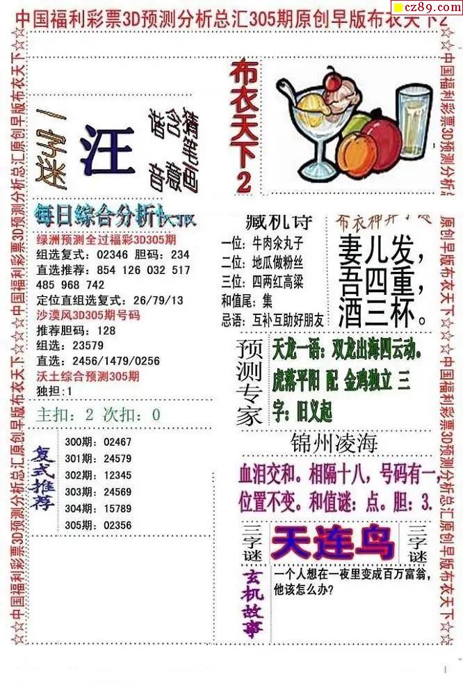福彩3D2025329期 祁连牧哥百财纳福胆码图谜推荐