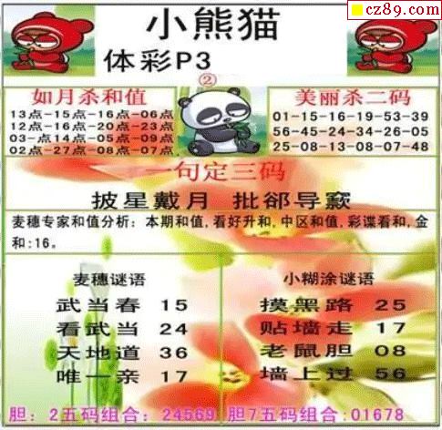 2025年325期牛彩网体彩P3画迷图谜汇总分享