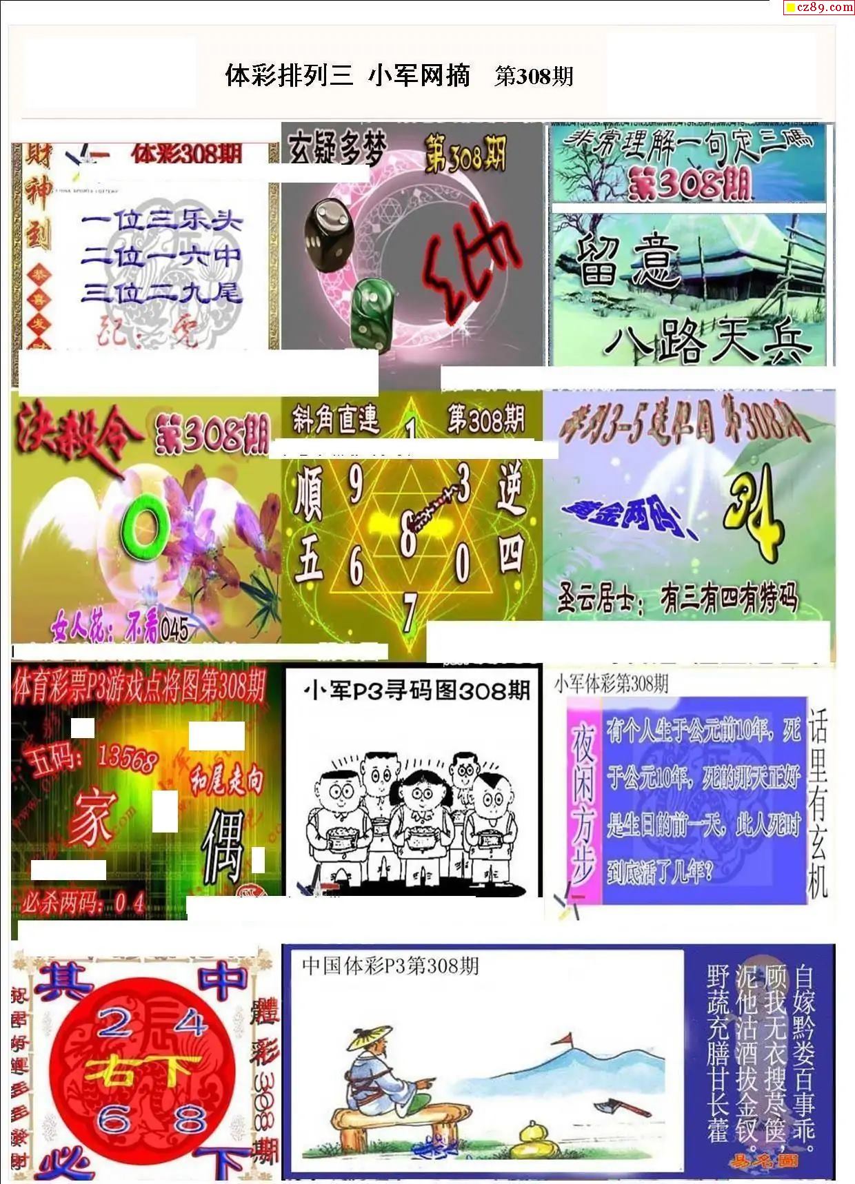 2025年308期牛彩网体彩P3画迷图谜汇总分享