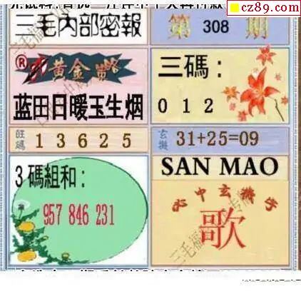 三毛图2025308期3d图谜