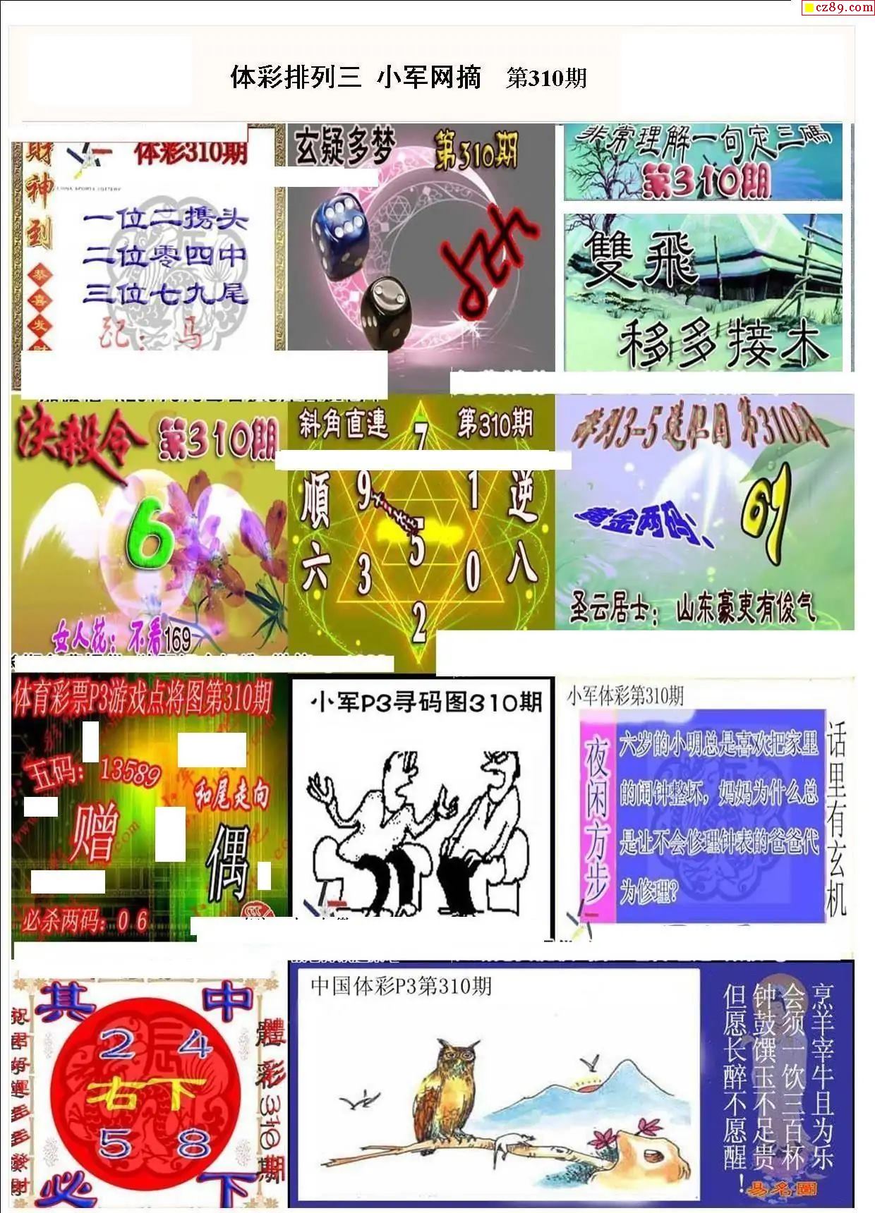 2025年310期牛彩网体彩P3画迷图谜汇总分享