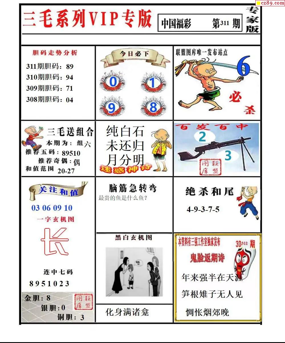 福彩3D2025311期东盛彩报+精品三毛会员版