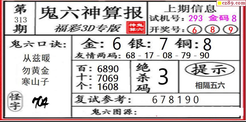 福彩3D2025325期 红尘入世锦鲤吐胆图