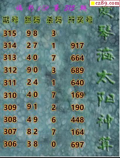 福彩3D2025315期财子胆杀码图