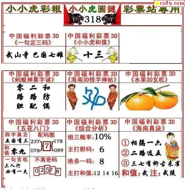 小小虎彩报2025326期3d图谜