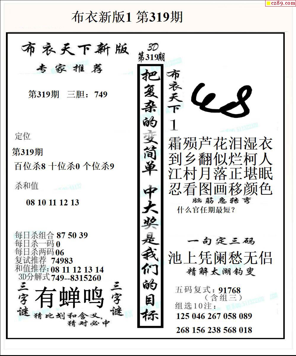 牛彩版3D字谜彩报图25年328期打印版