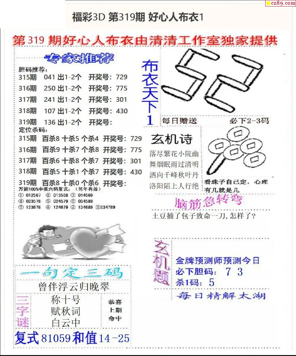 2025328期福彩3D图谜汇总