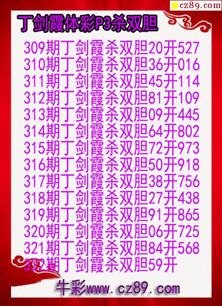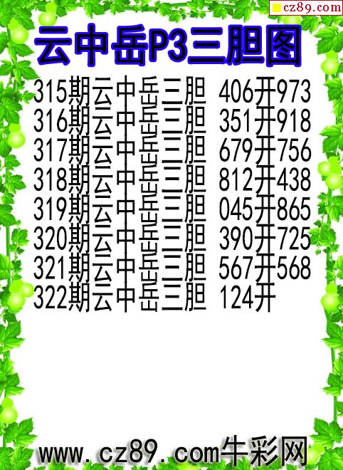 2025年325期牛彩网体彩P3画迷图谜汇总分享