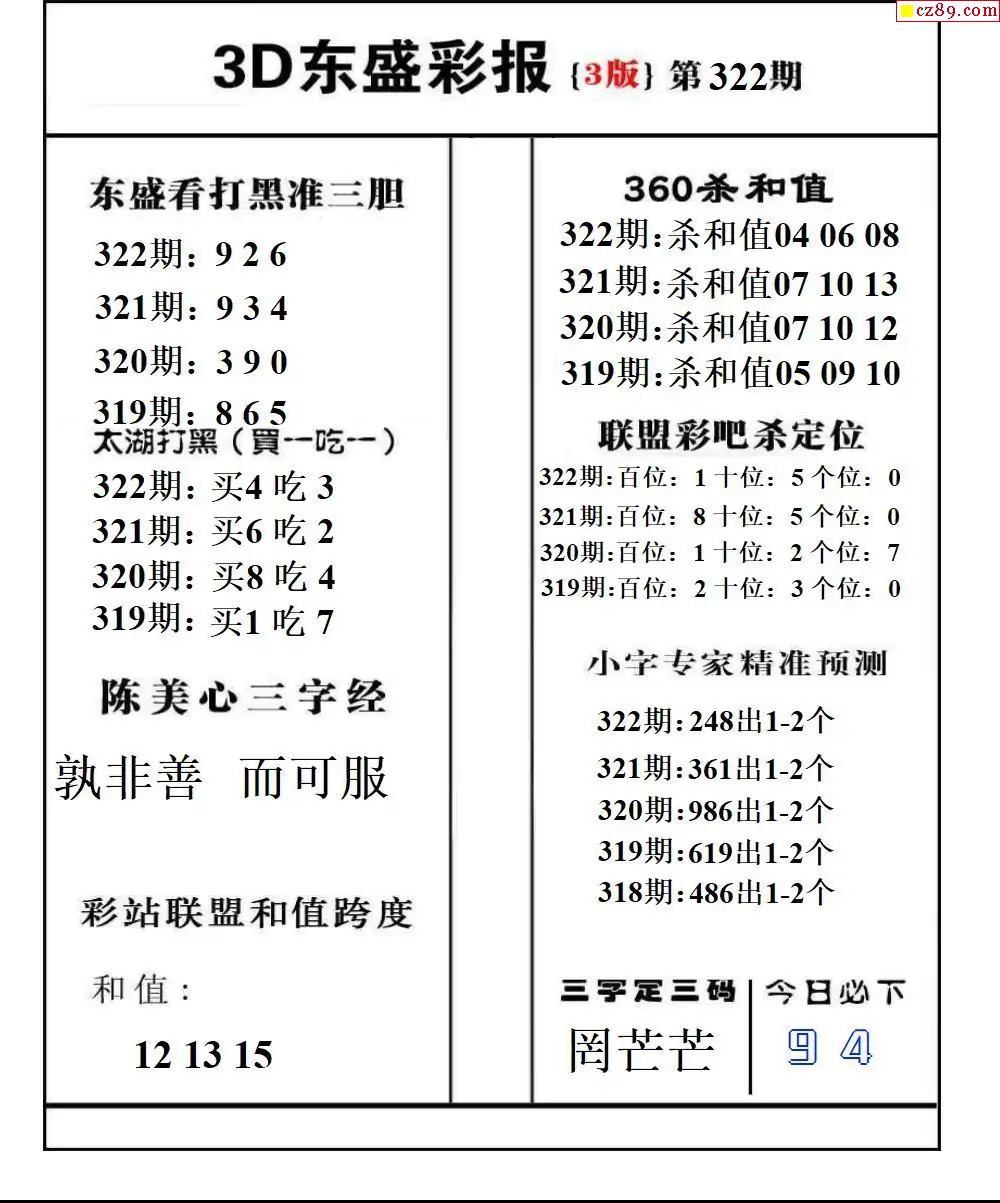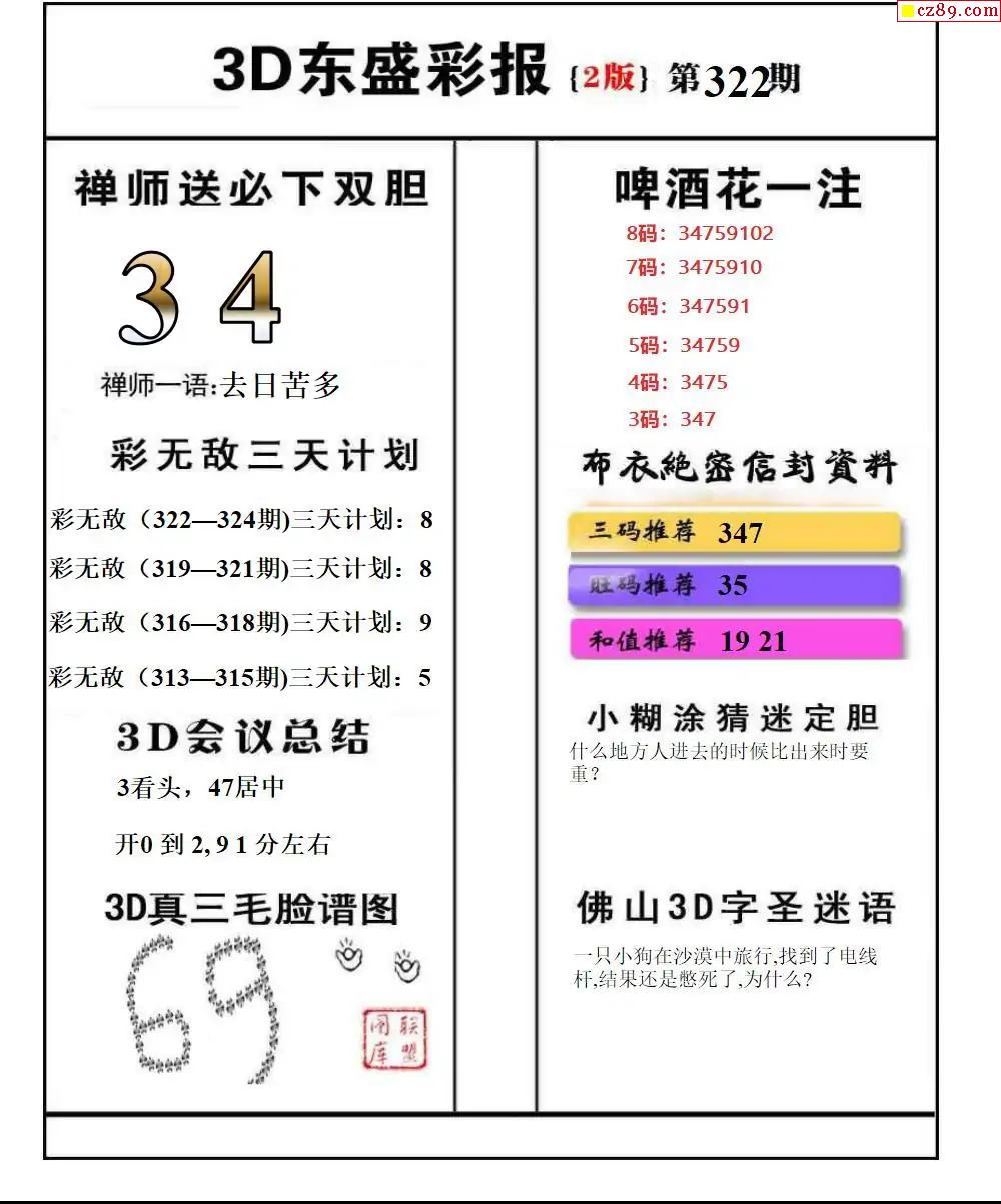 福彩3D2025322期东盛彩报+精品三毛会员版
