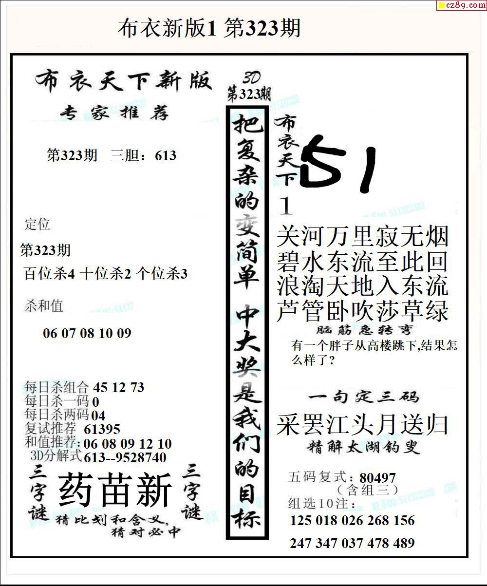 牛彩版3D字谜彩报图25年327期打印版