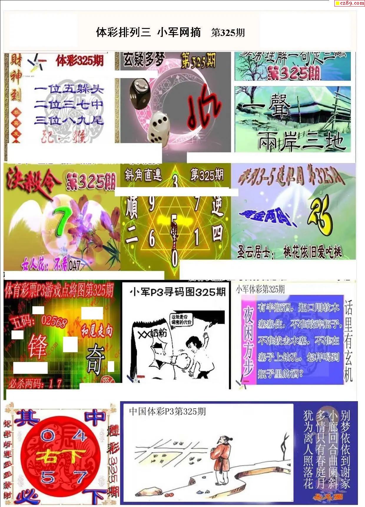2025年325期牛彩网体彩P3画迷图谜汇总分享