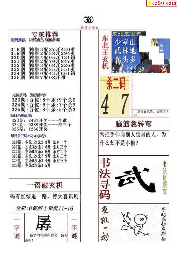牛彩版3D字谜彩报图25年325期打印版