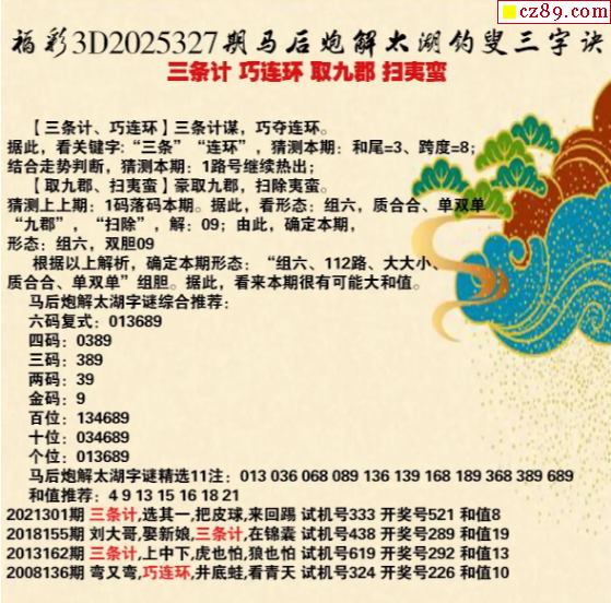 25年327期王侯猜想3D谜语太湖三字诀 取九郡