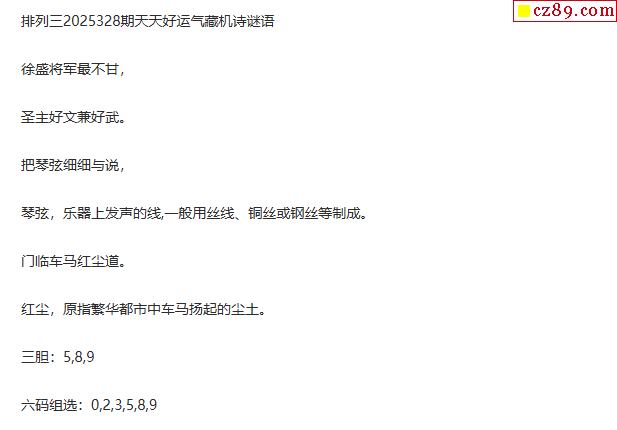 体彩P3字谜汇总2025年328期超级马克p3今日字迷总汇