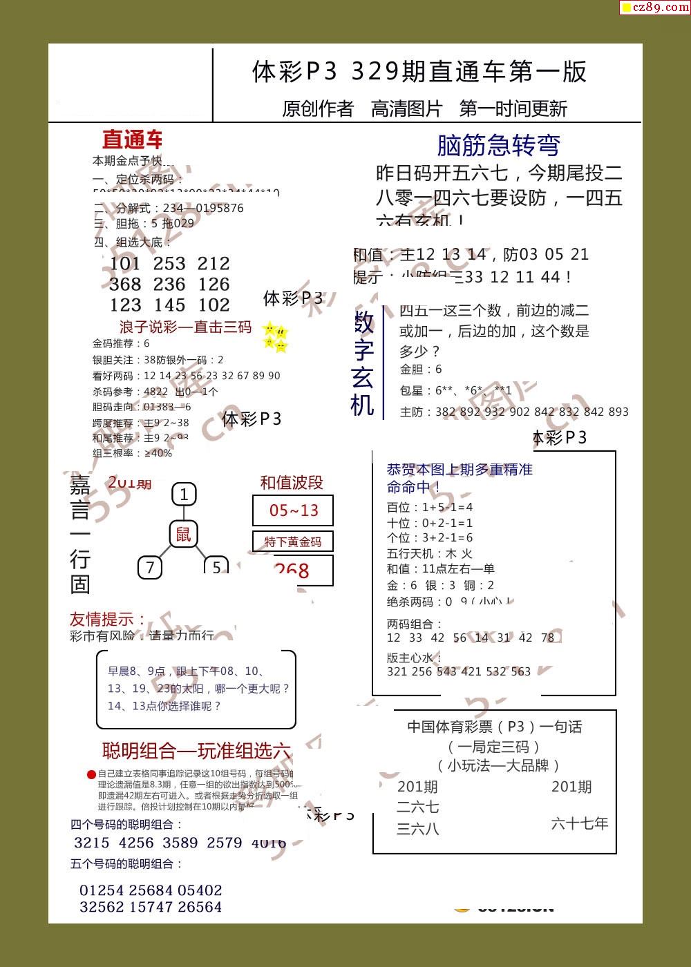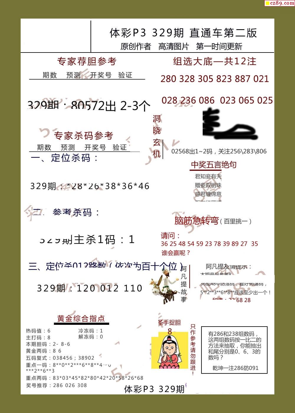 直通车AB版329期体彩p3图谜