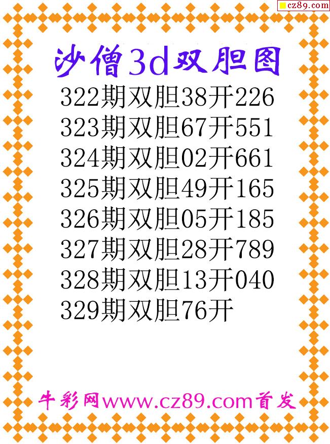 沙僧双胆25329期3d原创图谜