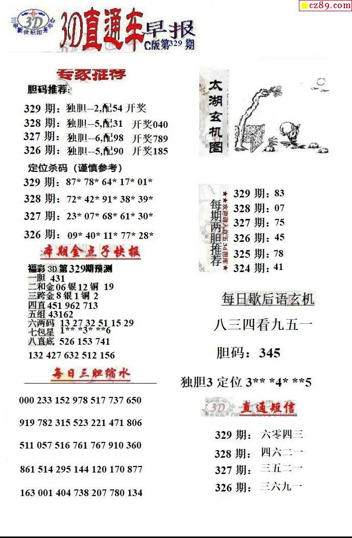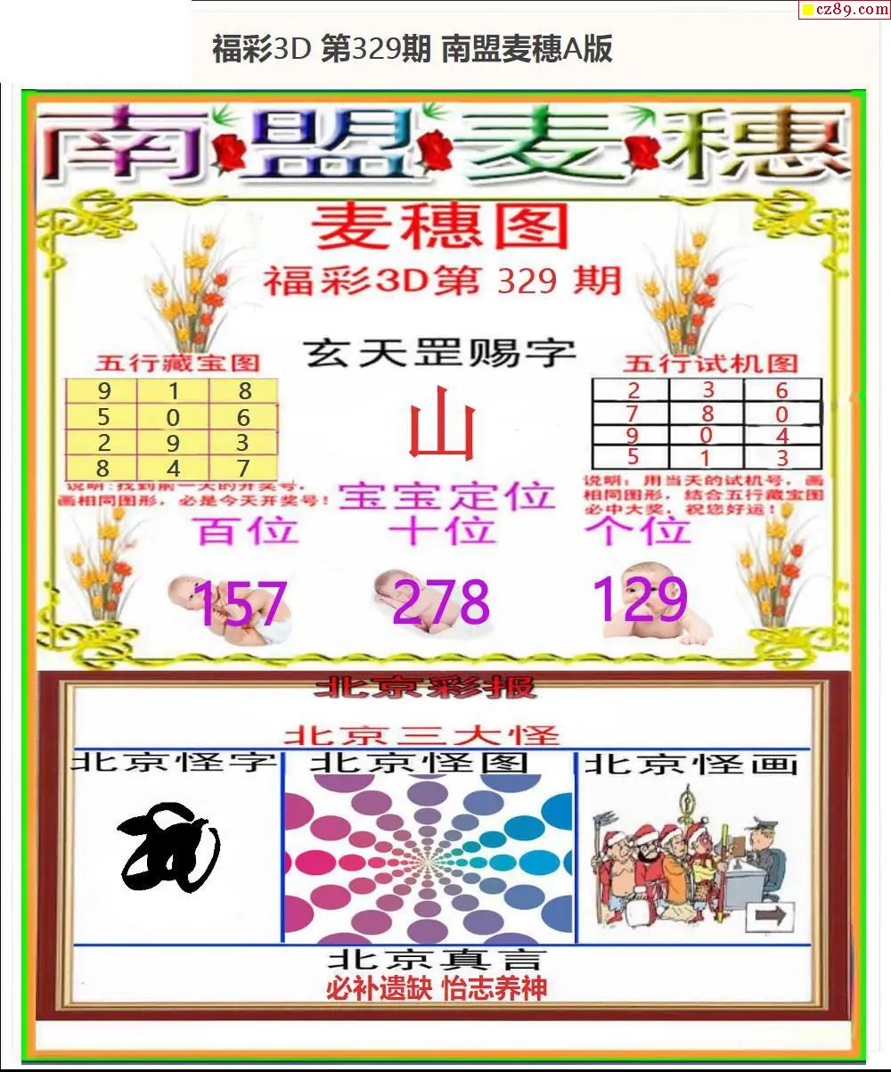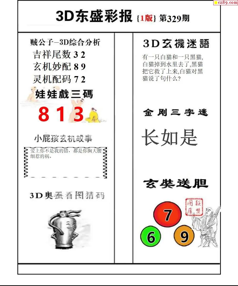 福彩3D2025329期 祁连牧哥百财纳福胆码图谜推荐