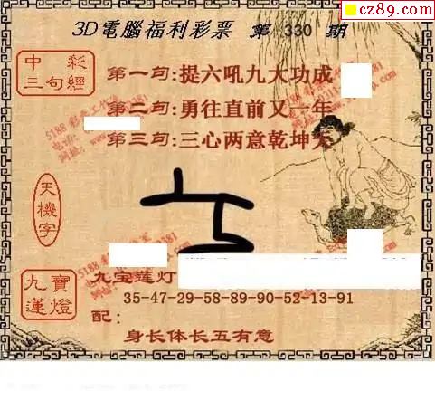 牛彩版3D字谜彩报图25年330期打印版