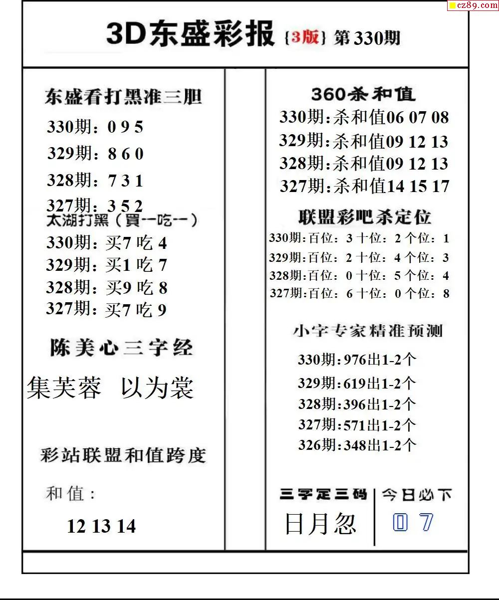福彩3D2025330期东盛彩报+精品三毛会员版
