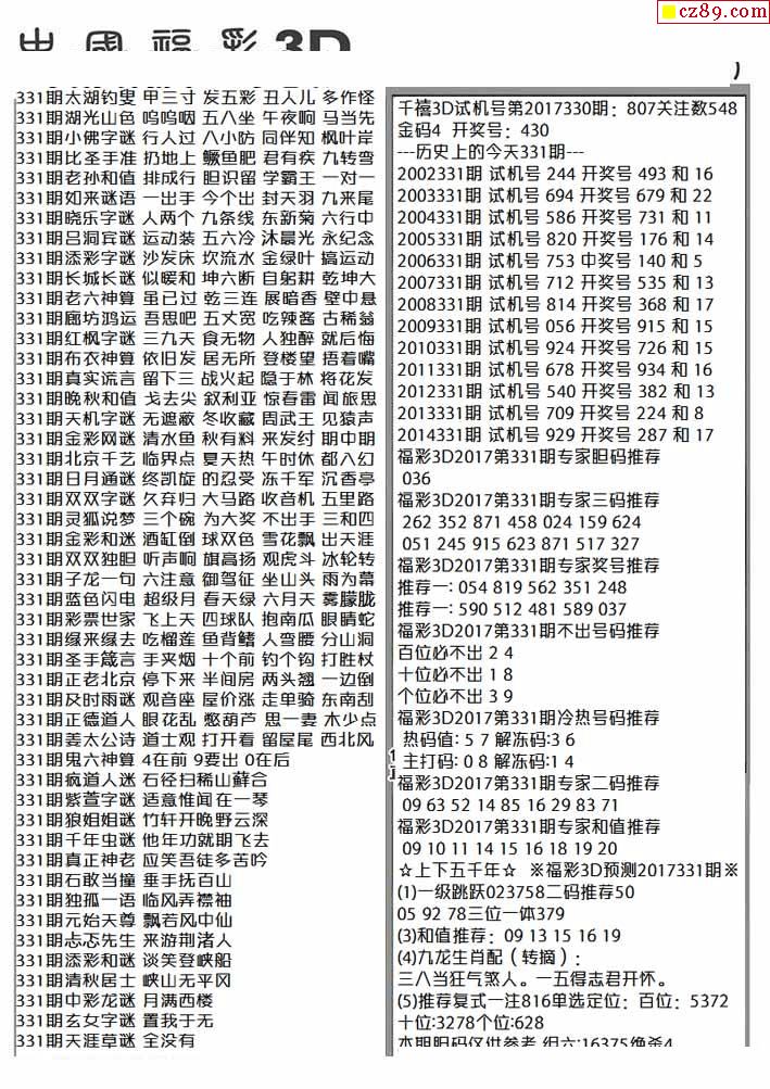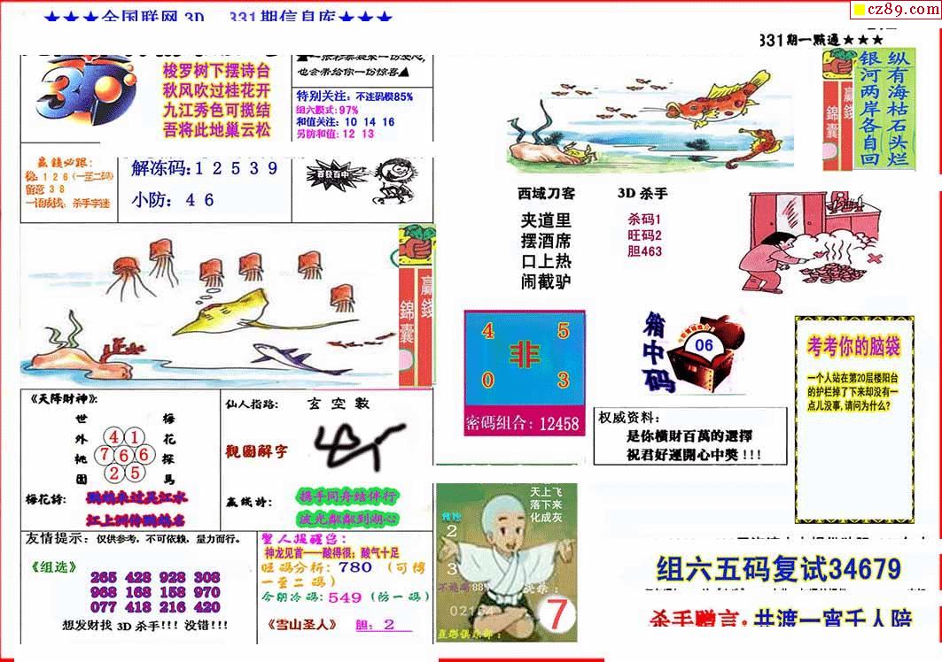 杀手+鑫马快报+字迷汇总25年331期3d图谜