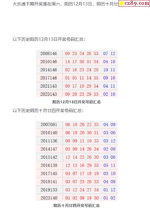 历史上的今天大乐透12月13日开奖号码汇总