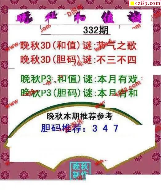 晚秋和值谜2025332期3d图谜