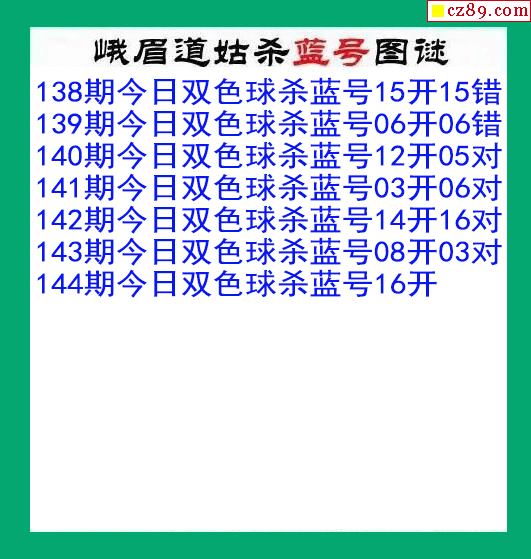 峨眉道姑杀蓝号144期双色球图谜