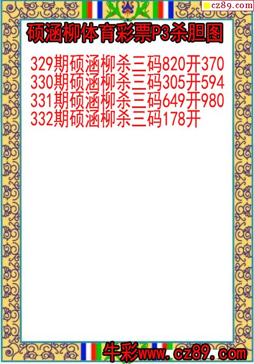 25年332期常君体彩排3杀码图