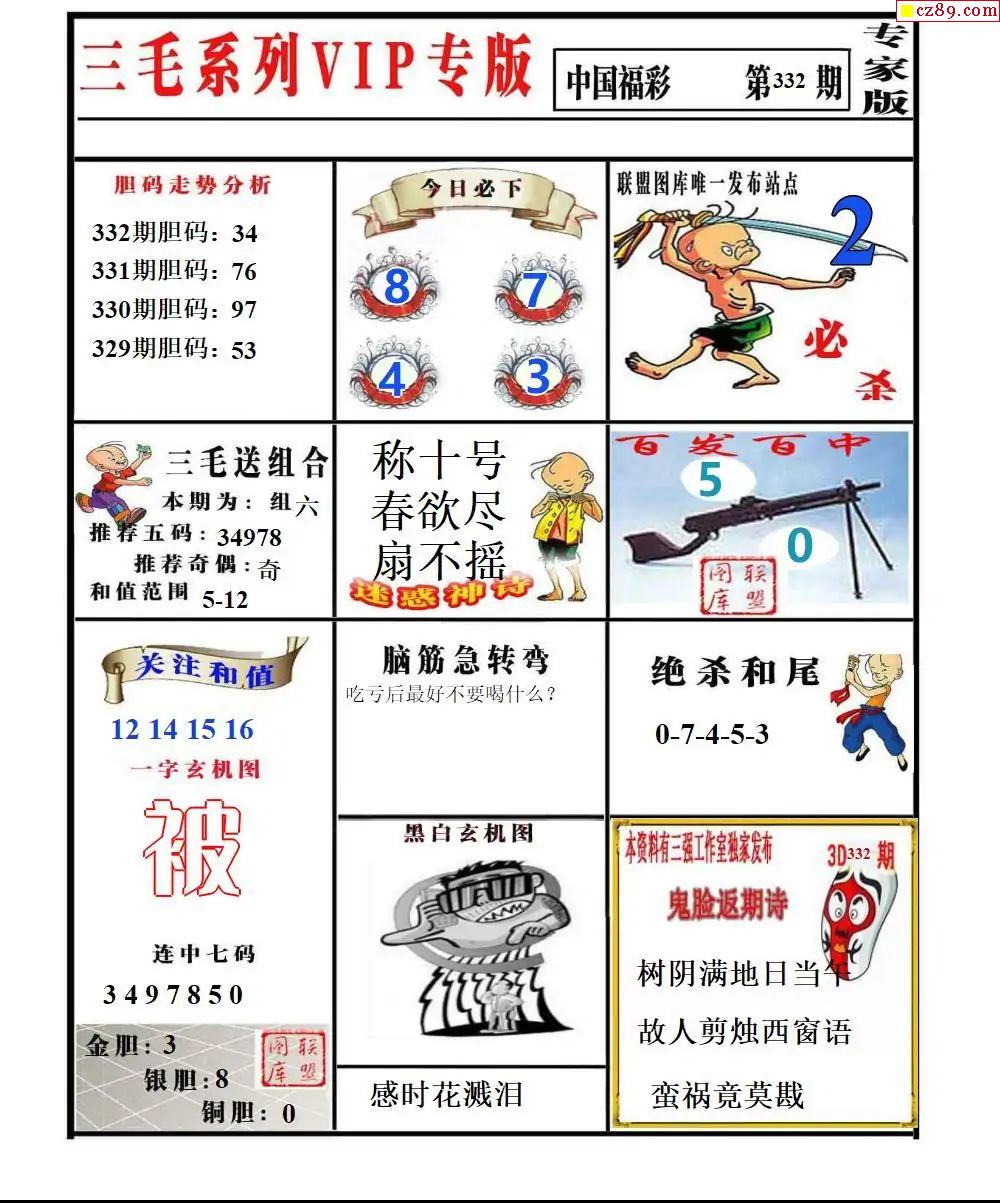 福彩3D2025332期东盛彩报+精品三毛会员版